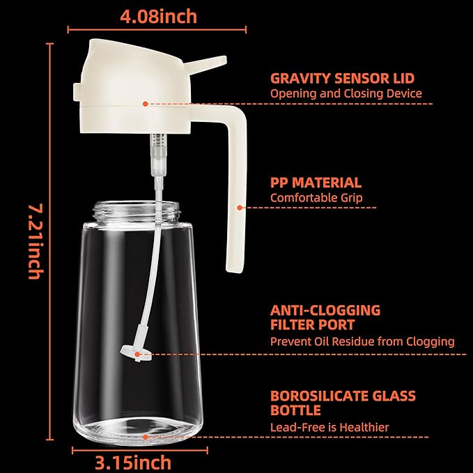 The 2-in-1 Oil Dispenser features a built-in filter that prevents oil from clogging, ensuring a consistent spray and pour every time you use it. No more frustrations with blocked nozzles.